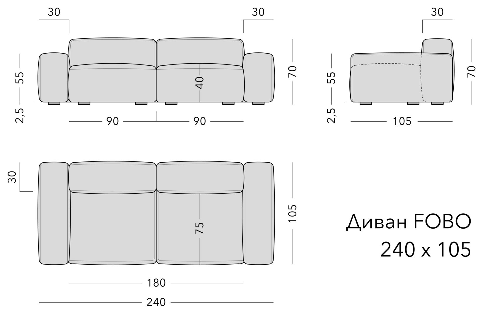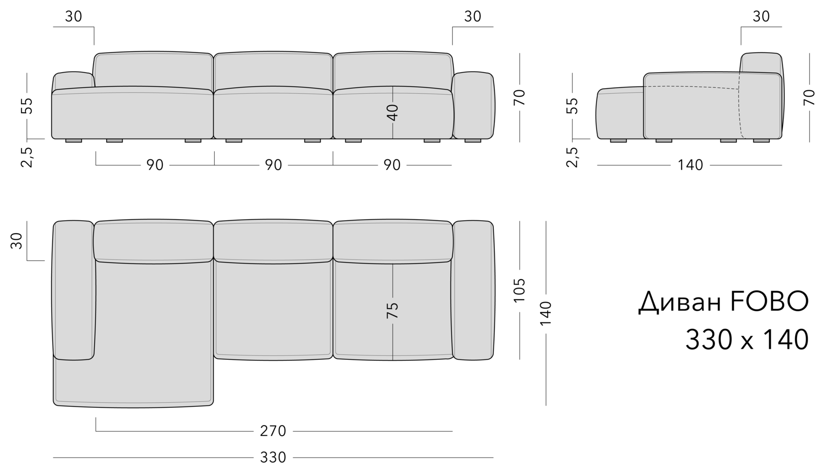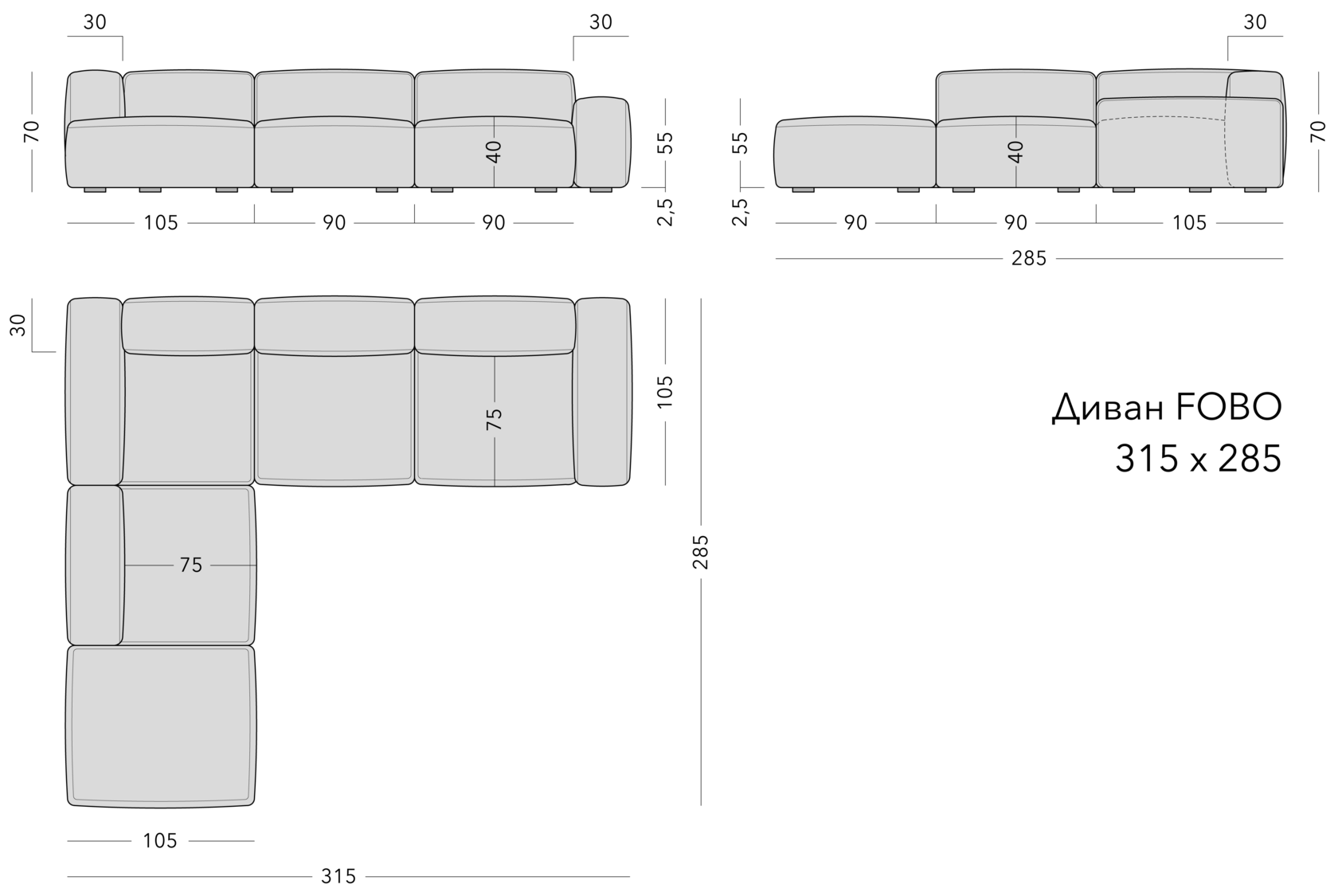 Fobo построен на принципе свободной конфигурации — модули легко собираются в прямые, угловые или островные решения. Диван отличается отсутствием острых углов, тонкой строчкой, деревянными ножками и повышенной мягкостью посадки.