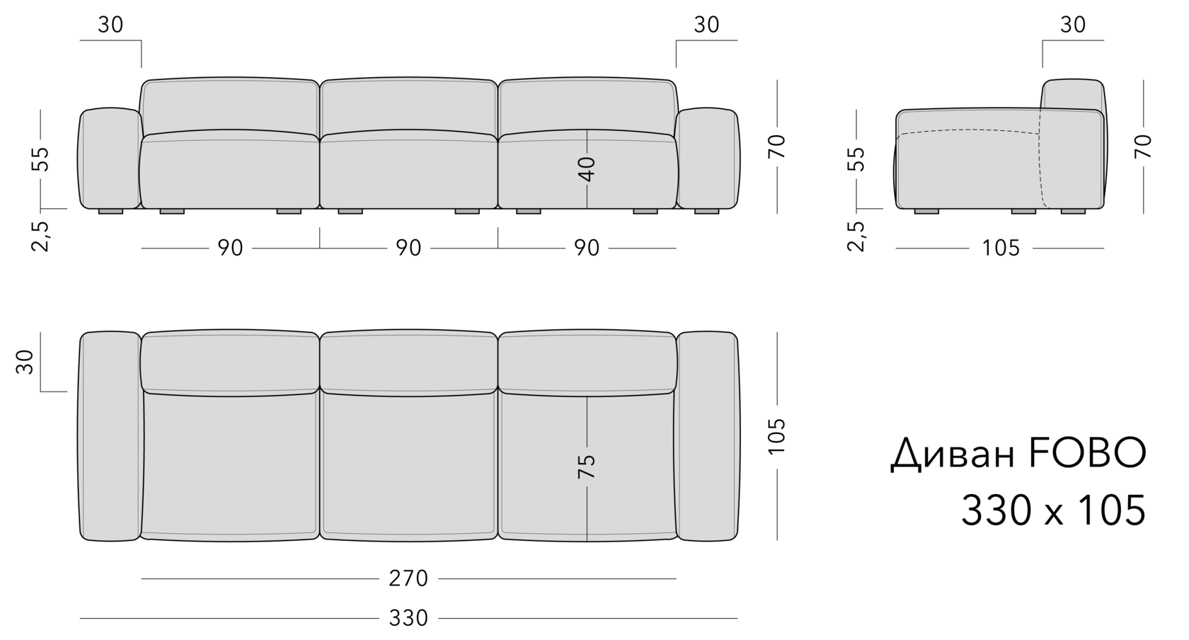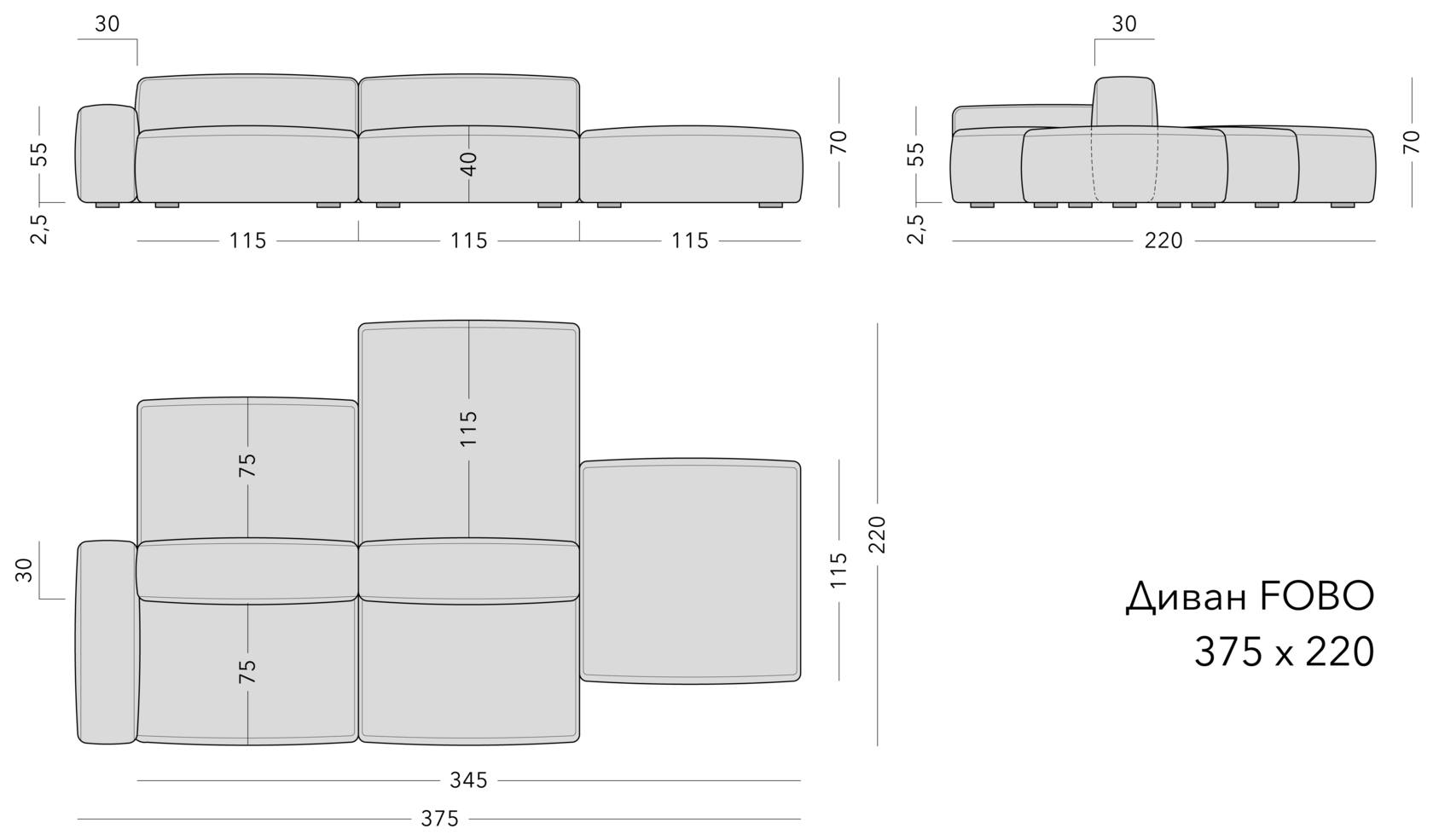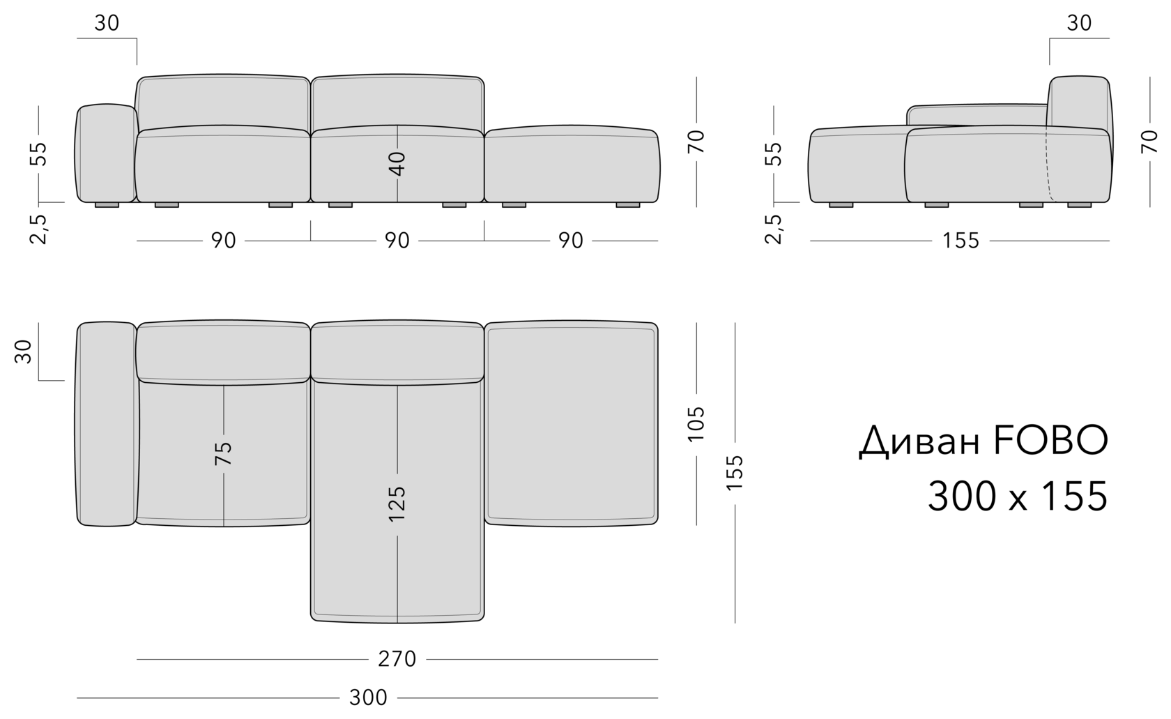 Fobo построен на принципе свободной конфигурации — модули легко собираются в прямые, угловые или островные решения. Диван отличается отсутствием острых углов, тонкой строчкой, деревянными ножками и повышенной мягкостью посадки.